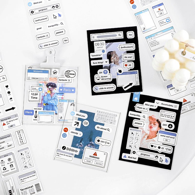 Add a touch of personality to any surface with our Creative Frame Label Bar Code Adhesive Stickers. Made from premium adhesive with exceptional printing quality and vivid colors, our stickers come in a stunning range of 4 styles: comment boxes, texts, computer icons, and barcodes.