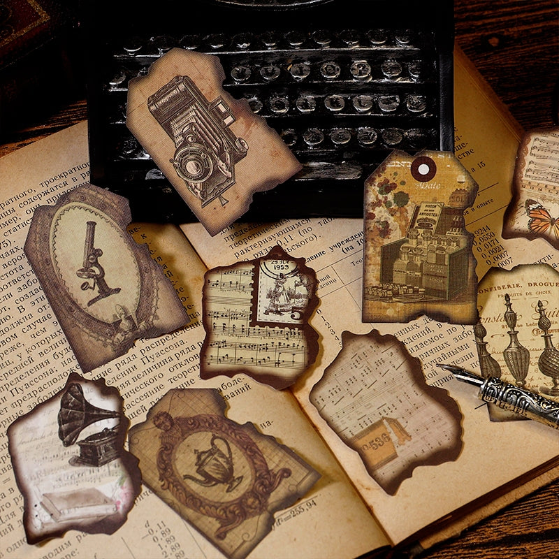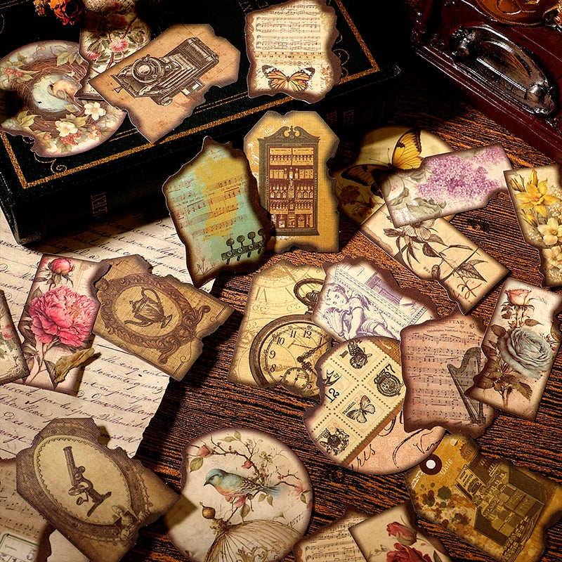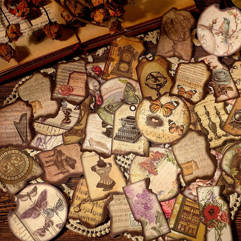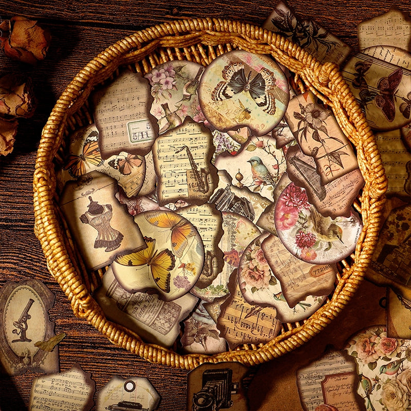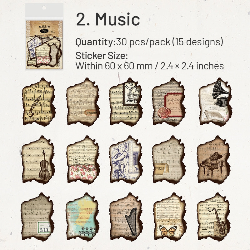 Vintage Burnt Edge Sticker - Antique, Music, Flower, Butterfly