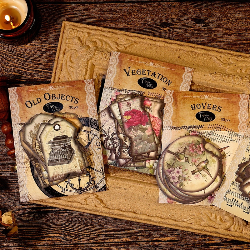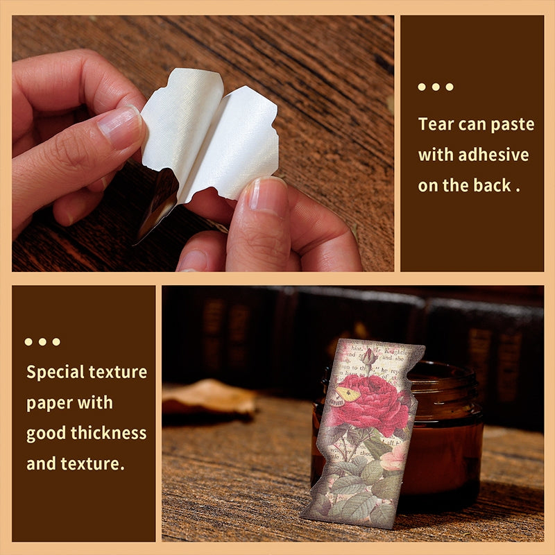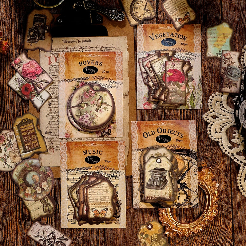 Introducing our Vintage Burnt Edge Sticker collection, a delightful assortment of nostalgic designs perfect for adding a touch of old-world charm to your crafts. Each pack contains 30 stickers featuring intricate Antique, Music, Flower, and Butterfly motifs. Crafted from high-quality writable paper, these stickers boast a unique burnt edge detail that lends them an authentic vintage look and feel. Measuring at a convenient size of 60 x 60 mm, these stickers are versatile and ideal for embellishing journals, scrapbooks, cards, and more. With their adhesive backing, they are easy to peel and apply, making them a must-have for any crafting enthusiast.