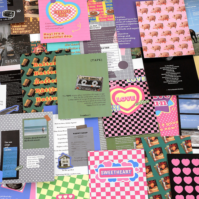 Elevate your creativity with the Whimsy Life Adhesive Background Sticker Book. This one-of-a-kind collection features 20 unique designs, each with a complex blend of colors and compact patterns. With four styles to choose from - Masquerade, Color Memory, Silent Text, and Journey Echo - you can add a touch of retro and cute charm to any project.